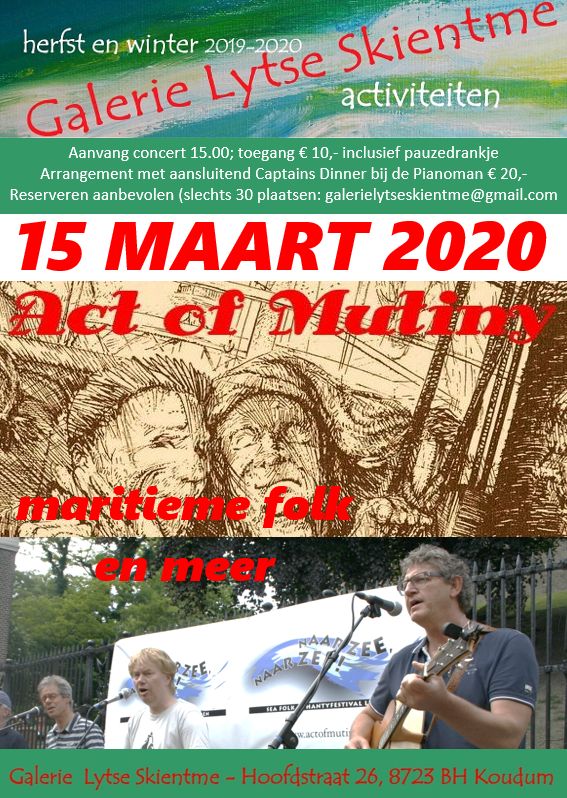 Op 15 maart om 15 uur treedt Act of Mutiny op in onze galerie in Koudum. Het is het laatste winterevenement we organiseren voor het expositieseizoen weer begint.