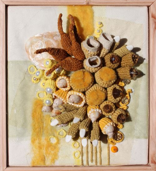 Deja Koopmans maakt beeldend textiel. Textiel, ruw, glad, verfijnd, grof. Texturen, het voelen, het tasten. Het tactiele, het door de handen laten gaan, de kleuren in textiel met haar nuances, dat alles geeft haar veel voldoening en verwondering, elke dag weer en al haar hele leven. Eerst als docent beeldende vakken (voornamelijk textiel), maar nu maakt ze meer tijd voor haar eigen werk.