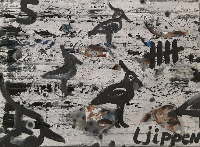 Dichter, zanger/performer van de Friestalige groep Tigers fan Greonterp en beeldend kunstenaar Elmar Kuiper (Sneek, 1969) toont in Galerie Lytse Skientme schilderijen die hij het afgelopen jaar maakte.