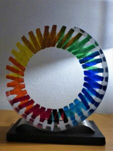 Henk van der Vegt maakt nog geen tien jaar glasobjecten, maar is als beeldend kunstenaar inmiddels een graag geziene gast op exposities in beeldentuinen en galeries. Hij ontwerpt en maakt objecten van glas door middel van glasfusing in combinatie met roestvrij staal. Hij raakte een aantal jaren geleden gefascineerd door de combinatie glas en licht. Sindsdien maakt hij met veel plezier steeds weer nieuwe glasobjecten, puur vanuit zijn gevoel.