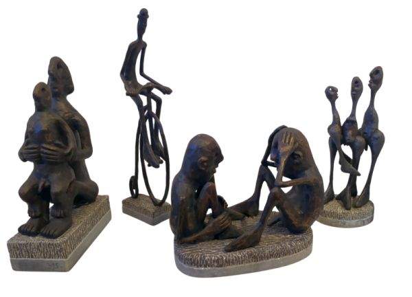 Qua stijl sluiten zijn beelden aan bij zijn schilderijen. Het zijn kleine beelden (zo’n 25 – 45 cm hoog), maar ze stralen kracht uit mede door hun eenvoudige stijl en vleugjes humor. Het zijn fantasierijke, onbevangen figuren, zoals het ‘Koppel’, de ‘Man op de vélocipède’, de mannen in een zwaar ‘Gesprek’, of het ‘Gezinnetje’. De bronzen beelden staan allemaal op een sokkeltje van bewerkt arduin (Belgisch hardsteen).