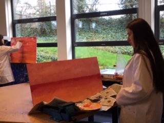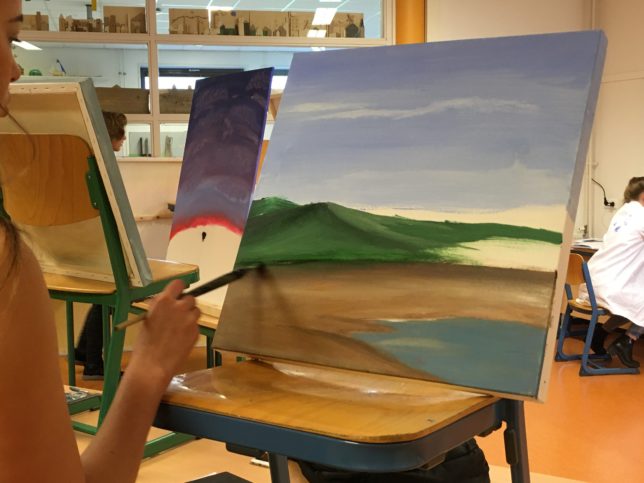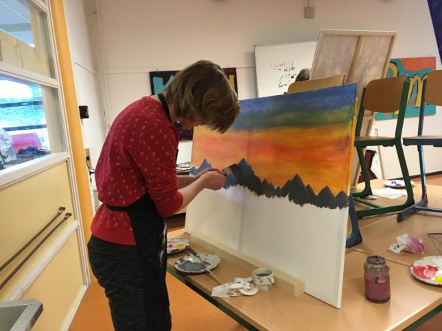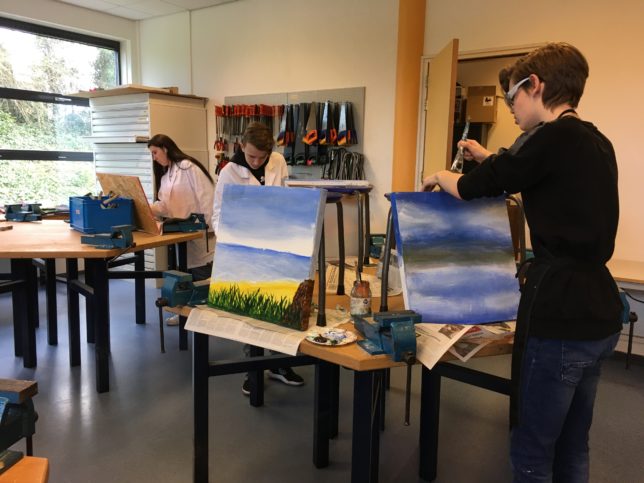 Half maart bracht Brigitte Duin een bezoek aan de school, waar de leerlingen druk bezig waren om de opdracht van hun lerares uit te voeren. De een nog worstelend met beeld en kleur, de ander al met een duidelijk idee van waar het schilderij naar toe zou moeten.