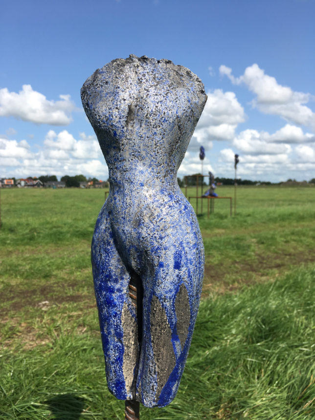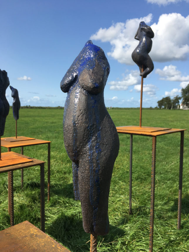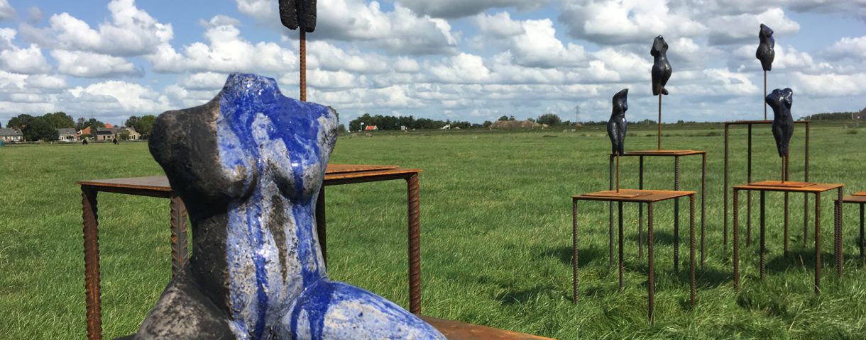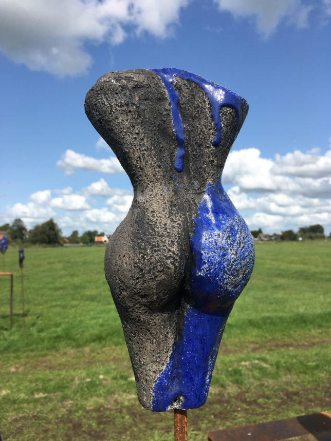 De beeldenserie ‘ladylike’ is Marina’s persoonlijke ode aan de vrouw in al haar verschijningsvormen. De driedimensionale schetsen van klei zijn op 1200oC gebakken, overgoten met blauwe glazuur en opnieuw gebakken. Door variatie in vorm, kleisoort, glazuurdikte en de temperatuur van de tweede stook is ieder beeld een unieke verschijning. De meeste ‘ladylike’s’ staan op een pinsokkel van cortenstaal en ze zijn allemaal weerbestendig.