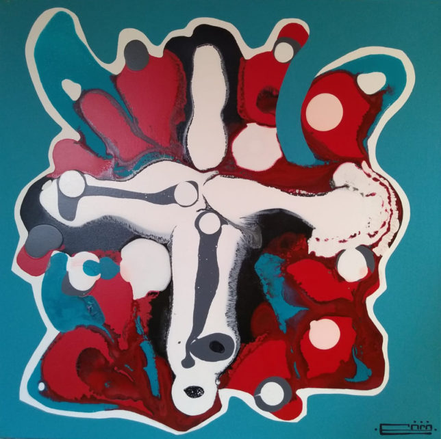 In addition to the geometric abstract paintings, Petrov also makes abstract works that have a more surrealistic appearance. In these paintings it seems as if the capricious shapes are less constructed and have ended up on the canvas more intuitively. Whatever the method, working this way also produces fascinating, colorful paintings.