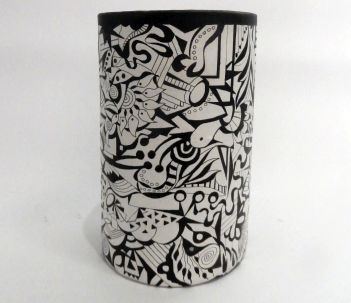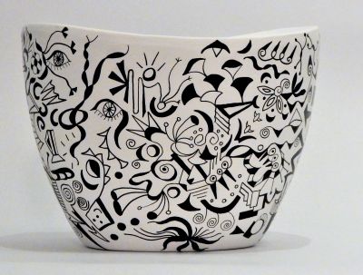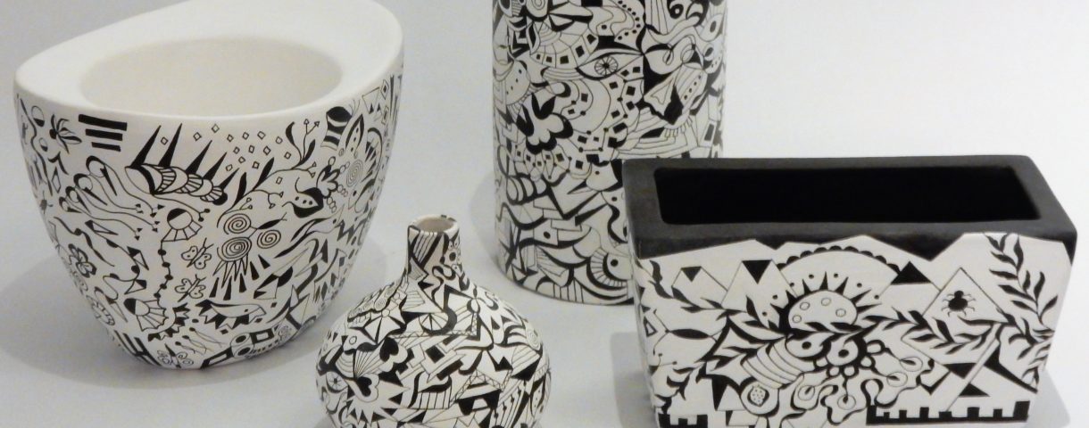 Naast het creëren van beelden uit klei maakt Ryt ook pentekeningen. Een andere manier om ideeën uit haar creatief borrelende brein te verbeelden. De ene streek volgt op de andere. Er is geen systeem, de afbeelding groeit als vanzelf uit tot een unieke compositie. Altijd zwart-wit, maar nooit hetzelfde. Vervolgens kwam ze op het idee om beide kunstuitingen te combineren en ontstonden haar pentekeningen op aardewerk die ze dit jaar in galerie Lytse Skientme exposeert.
